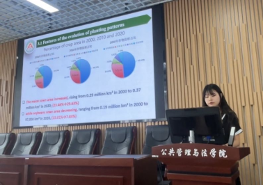 best365中国官方网站best365中国官方网站研究生马梦琪作了《Analysis of the Spatial and temporal evolution of Maize-soybean cropping patterns and its link with climate warming in Northeast China between 2000 and 2020(2000—2020年东北地区玉米大豆种植格局时空演变及其与气候变暖的联系)》的报告,分析了全球气候变化对农业生产的影响以及作物种植格局与生物气候因素变化之间的关系,为东北地区农业种植制度的优化提供了建议。