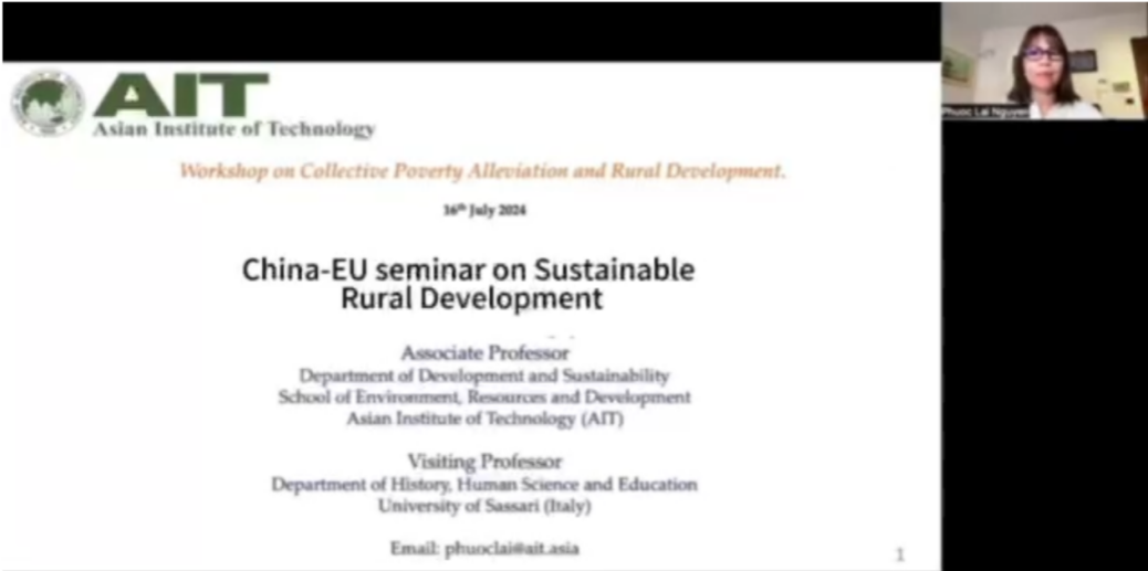 亚洲理工学院副教授、意大利萨萨里大学访问学者Thi Phuoc Lai Nguyen作了《Rural Development Policy and Multidimensional Poverty Alleviation: The Experience of Thailand(农村发展政策与多维扶贫:泰国的经验)》的报告。报告深入剖析了集体减贫与农村发展,并全面分析了亚洲农村地区可持续发展挑战与机遇。