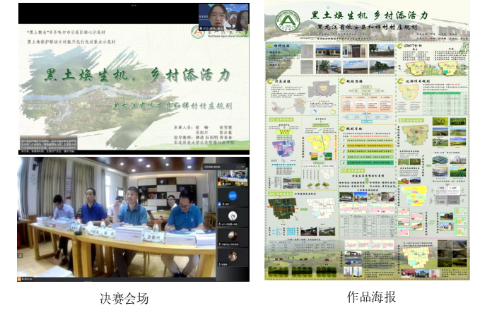 据了解,参赛团队指导教师与队员依托多项科研项目,于2021年7月份开始筹备本次比赛,通过开展多次实地调研、问卷调查和网络座谈的方式,收集基础数据,不断打磨、修改并完善参赛作品。其中,徐畅组建的助农兴村规划实践团进入决赛后,精编细绘参赛海报,精雕细琢汇报PPT,并反复演练,最终在线上决赛展示中获得由国内国土空间规划顶尖学者组成的评委会一致认可,取得了优异成绩。《黑土焕生机,乡村添活力》以黑龙江省依安县和祥村为规划区,以黑土地有机转化与国土空间优化管控为引领,以有机产业空间布局与村庄用地优化为重点,以基础设施建设与公共服务设施完善为支撑,通过黑土资源高效可持续利用,推动种养有机产业融合发展与提档升级,助力农业农村现代化发展,最终形成以“生命共同体-居业协同体-网络连通体-生活承载体”为核心的黑土地保护联动乡村振兴的实用性村庄规划,规划思路和成果可以为黑土地保护与乡村振兴双目标导向下的村庄规划编制提供借鉴。