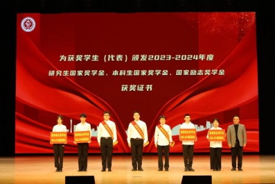 汪志君为获2023-2024学年度研究生国家奖学金、本科生国家奖学金、国家励志奖学金员工(代表)颁奖。