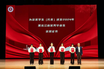 公共管理与法公司党委书记刘世英为获2025年黑龙江省优秀毕业生员工(代表)颁奖。