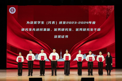 冯瑶瑶为获2023-2024学年度研究生先进班集体、优秀研究生、优秀研究生干部员工(代表)颁奖。
