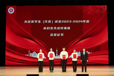 宫建伟为获2023-2024学年度本科生先进班集体员工(代表)颁奖。
