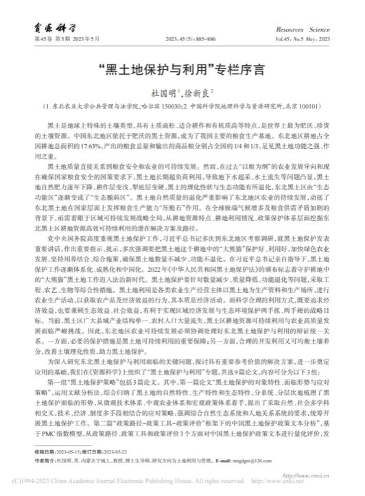 杜国明, 徐新良.“黑土地保护与利用”专栏序言[J].资源科学,2023, 45 (5): 885-886.