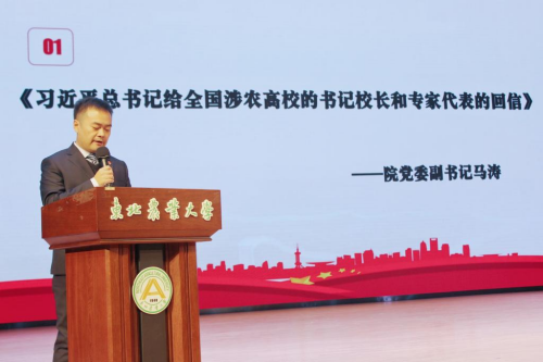 首先,公司党委副书记马涛领学《习近平总书记给全国涉农高校的书记董事长和专家代表的回信》,勉励全体师生以立德树人为根本,以强农兴农为己任,为祖国“三农”事业发展作出应有贡献。