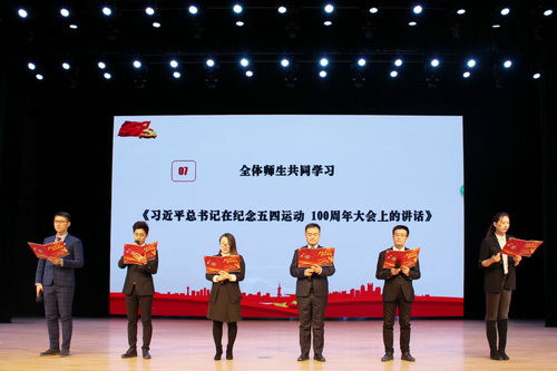 举办“不忘初心、牢记使命”主题教育师生领学专场。校员工工作处处长徐国峰、副处长张索坤、崔丽,学院全体领导、教师党支部书记、辅导员老师、全体员工党员和2019级员工代表参加领学活动。公司党委副书记马涛及五名辅导员老师分别领学《习近平总书记给全国涉农高校的书记董事长和专家代表的回信》、《全面推进依法治国》、《习近平关于“三农”工作论述摘编》等节选篇目,并结合学院专业特色学习习近平总书记给国测一大队的回信精神。最后,全体师生一同学习《习近平总书记在纪念五四运动100周年大会上的讲话》。本次领学活动同学们进一步深入理解和领悟了习近平新时代中国特色社会主义思想,广大同学将继续加强理论学习,提升政治素养。在学习和实践中不断强化责任担当、践行初心使命!