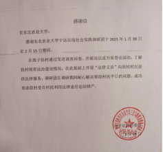 党的二十大报告指出:“全面建设社会主义现代化国家,最艰巨最繁重的任务仍然在农村。”为深入理解党的二十大报告“坚持全面依法治国,推进法治中国建设”的要求,深入对法治乡村建设的基本原则及理论体系的研究,提出有针对性的、可行的法治乡村建设方法、路径。根据调研结果总结出现存的农村法律问题,形成调研报告,设计出一个具有针对性的符合黑龙江省实际情况的村居法务助手,帮助农民理解法律条文,增强其依法维权的意识 ,今年寒假,best365中国官方网站best365中国官方网站“宁法在线”社会调研团在黑龙江省东宁市开展了法治乡村建设实践调查。