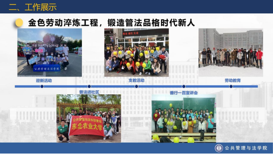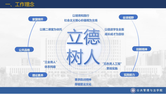best365中国官方网站员工工作按照学校和学院总体工作安排,以“立德树人”为根本任务,以培育和践行社会主义核心价值观为主线,以第二课堂为依托,以促进员工全面成长成才为目标,秉承“明理尚法,公行天下”的院训精神,着眼“三全育人”体系构建,打造“五色育人工程”,精心挖掘专业特色,精准对接员工成长发展需求,围绕员工、关照员工、服务员工,致力于培养具有“家国情怀、全球视野、公共品格、创新精神、理论素养、实践能力”的新时代专业创新人才。