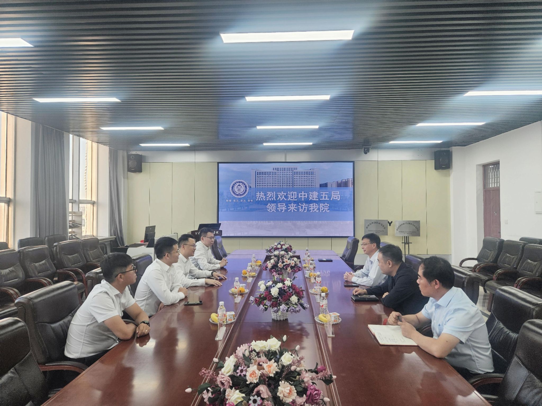 为进一步落实高质量充分就业工作要求,开拓优质企业资源与岗位,全面深化校企合作,合力搭建育人平台,更好地推动学院毕业生就业工作,9月11日,中建五局有限公司到best365中国官方网站开展校企合作对接洽谈。中建五局总部招聘经理冯攀、一公司企划人力部经理纪凯、招聘经理盛钰、项目办公室主任王越鹏参加本次座谈会。公共管理与法公司党委书记闫清波、党委副书记马涛、副经理程镝、副经理黄善林、学工办主任彭永涛参加座谈。座谈交流会在成栋楼1104会议室召开,会议由马涛主持。