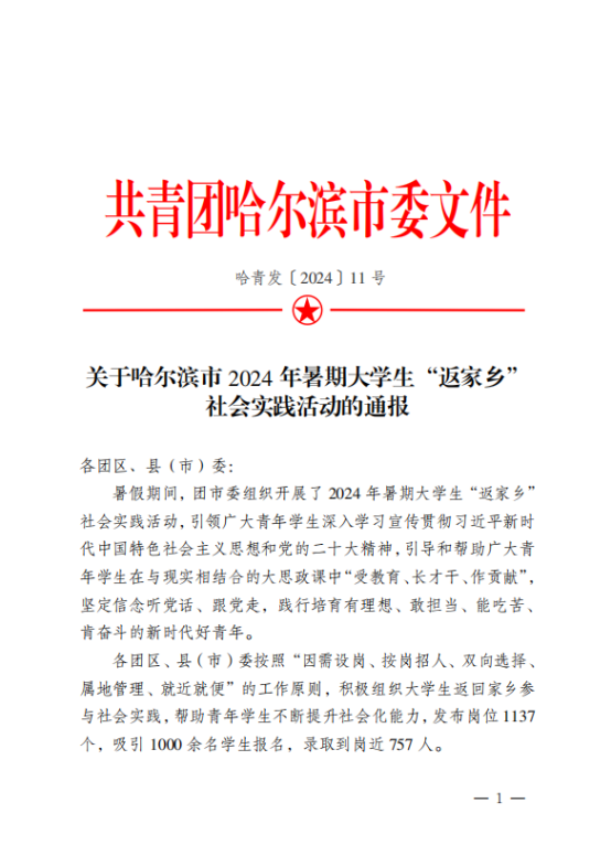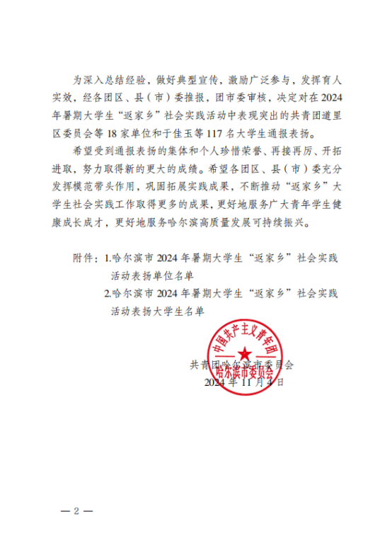 哈尔滨市2024 年暑期老员工“返家乡”社会实践活动表扬老员工名单