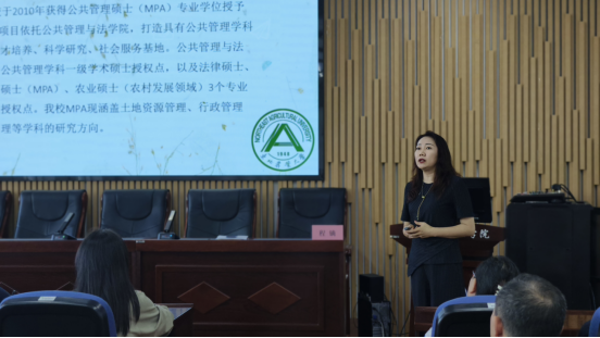 程镝在同学们正式踏上研究生的学术之路之际,为同学们介绍了MPA的学科概况、学科研究背景、学分与修读要求以及学位论文要求。她着重为同学们讲解了公共管理的发展趋势,要求同学们牢记MPA为党育人、为国育才的初心使命,发挥专业优势,聚焦国家治理的现实问题,为国家治理现代化战略的实现贡献智慧和力量。