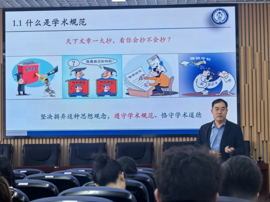 讲座现场,于文轩教授针对“生成式人工智能赋能公共管理论文写作”的概念以及如何正确使用、合理训练人工智能用于公共管理论文写作给予了认真讲解。