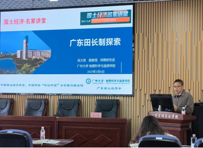 2025年3月6日上午,best365中国官方网站在成栋楼1104报告厅举办第二十一期社稷讲坛。本次讲坛聚焦耕地保护和国家粮食安全,特邀广州大学地理科学与遥感学院副教授、特聘研究员吴大放作题为《广东田长制探索》的专题学术报告。广东省耕地保护协会监事长余婉吟受邀参会,学院副经理黄善林、土地资源管理学科部分教师及相关专业研究生共同参加了此次学术活动。讲坛由黄善林主持。